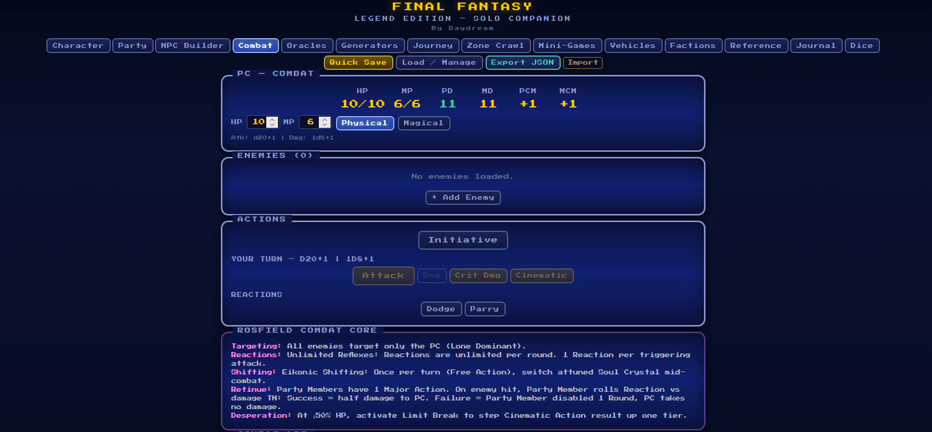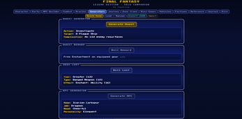 - An NPC Creator which includes all enemies from FFLE's released bestiaries